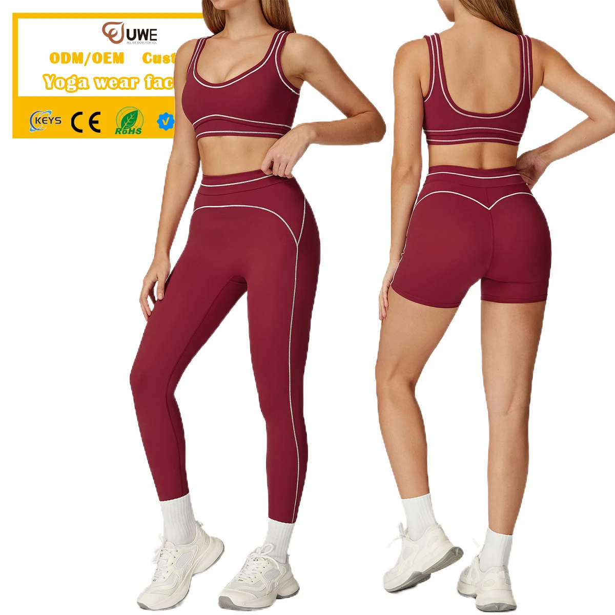 Custom 6 Piece Sets Contrast Color Leggings Shorts Yoga Sports Bras Athletic Sports Gym Sets Workout Sets for Women